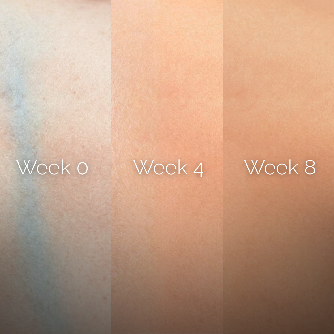 Week 8-12: Full saturation. Visible, lasting change in the mirror.
